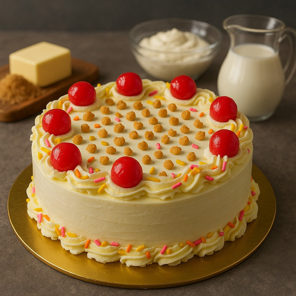 A slice of comfort, a whisper of love—our 1-pound Butterscotch Cake (Eggless) is more than just a dessert. It’s the softness of butter, the richness of cream, and the warm hug of caramel, all blended into a bite that melts hearts. Topped with crunchy bits, glossy red jewels, and colorful sprinkles, it’s designed to make every celebration sweeter, and every moment a little more special.